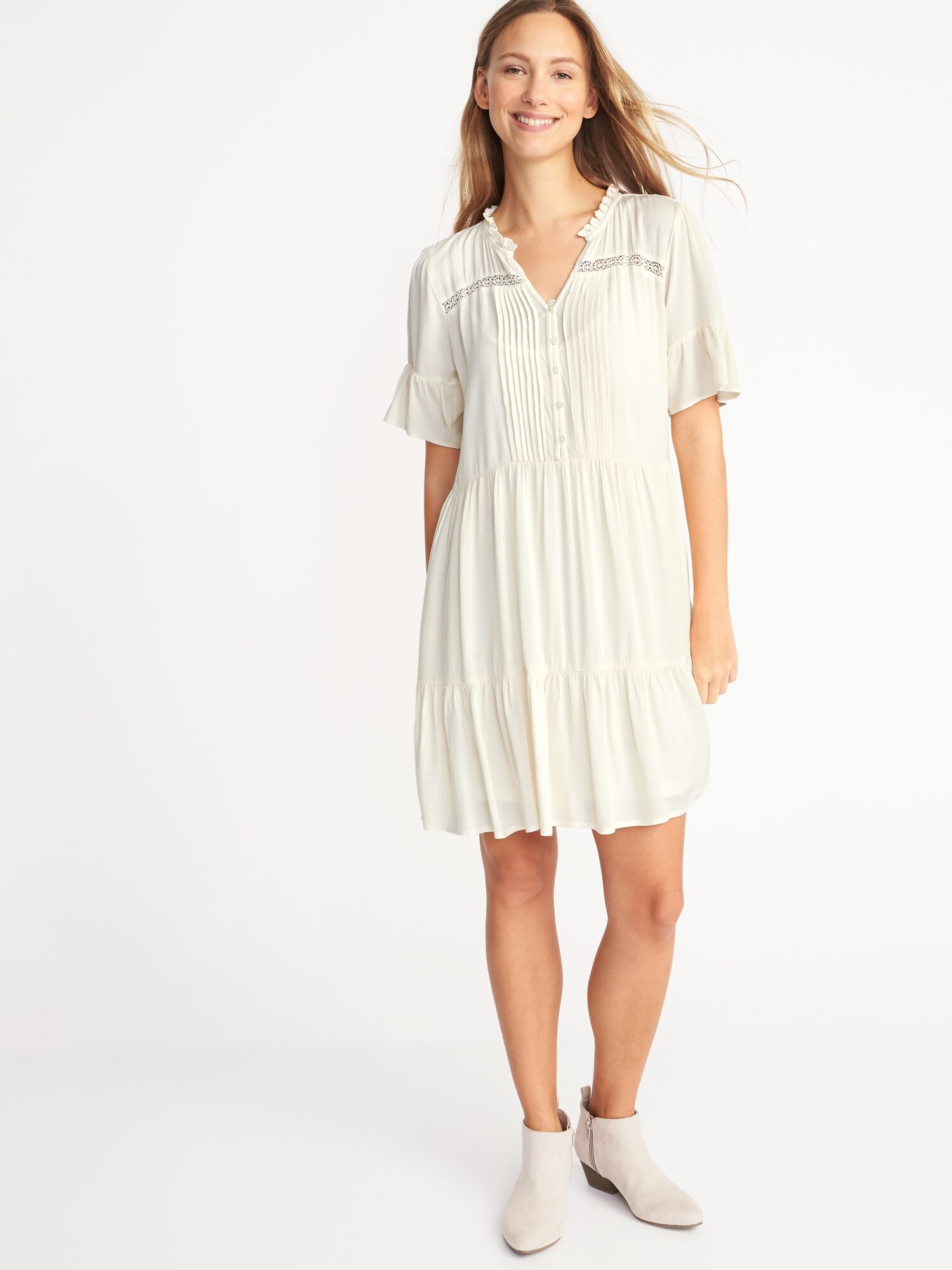 My favorite dress for spring has got to be this white tiered pintuck dress that's also under $40. I love that there are so many options as far as styling this dress. You could dress it up with wedges and statement jewelry (especially with a pop pf color) or you could pair it with keds and a denim jacket, just to name a few. Tiered Pintuck Dress